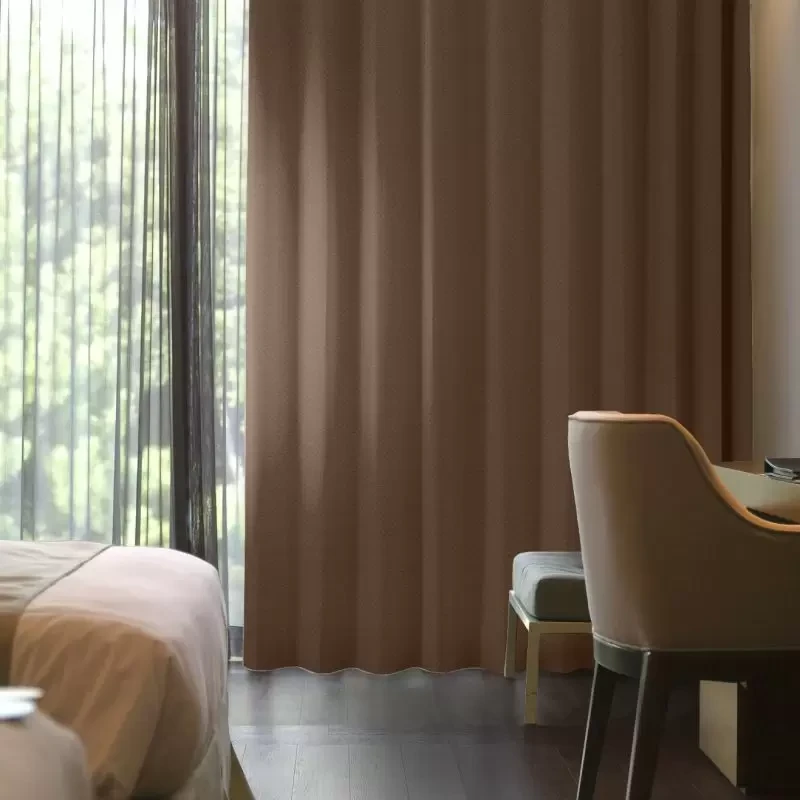 上品な市松チェック模様の遮光1級ドレープカーテンです。凹凸のある細かい模様は光沢感があり、お部屋に落ち着いた高級感をもたらします。遠目から見ると無地調でシンプルなため、モダン、アーバン、シンプル、カジュアルと幅広いテイストに取り入れやすいおすすめの商品です。家庭洗濯OK(ウォッシャブル)なので、お手入れも簡単です。カラー:リッチなブラウン色
