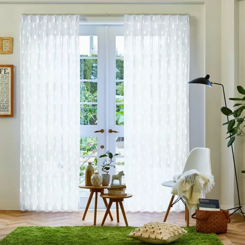 水滴をモチーフにした北欧調のレースカーテンです。ホワイトとカラーのカスレ感がナチュラルさと抜け感を感じさせます。