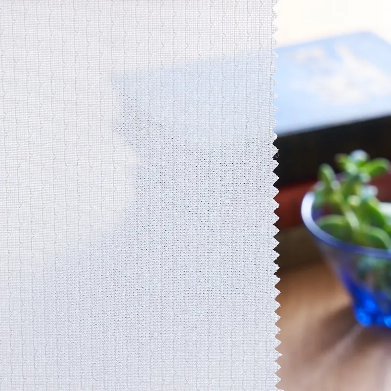 TEIJIN社の特殊繊維「エコリエ」を使用して遮熱、UVカット効果のある機能レースです。さらにミラー機能もあるのでプライバシー対策でお探しの方にもおすすめ。無地調ながらも縦方向に入ったラメ糸が雨模様のようで、キラキラと光って変化も楽しめます。シンプルなので幅広いドレープ生地との相性が良く、コーディネートしやすいおすすめのレースです。ナチュラル、モダン、アーバン、カジュアルなど幅広いテイストに馴染みます。家庭洗濯OK(ウォッシャブル)なので、お手入れも簡単。カラー:クリーンなホワイト色