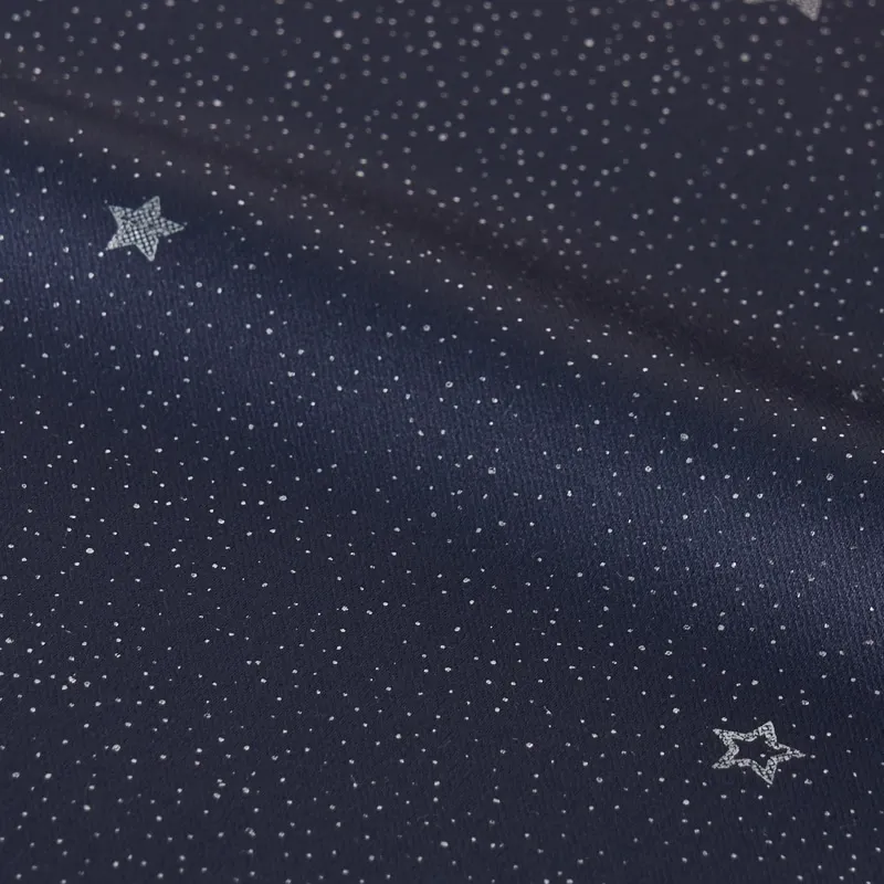 夜空にキラキラと瞬く星や月をデザインした遮光1級のドレープです。なめらかな手触りの生地に、フォイルプリント(箔転写)で光を散りばめていて、まるで天の川のように煌びやかです。同じシリーズのレース「トゥインクル・スター・シアー」とのペア使いがおすすめで、子供部屋に合わせると素敵な夢が見られそうなコーディネートです。家庭洗濯OK(ウォッシャブル)なので、お手入れも簡単です。カラー:夜空のようなネイビー色