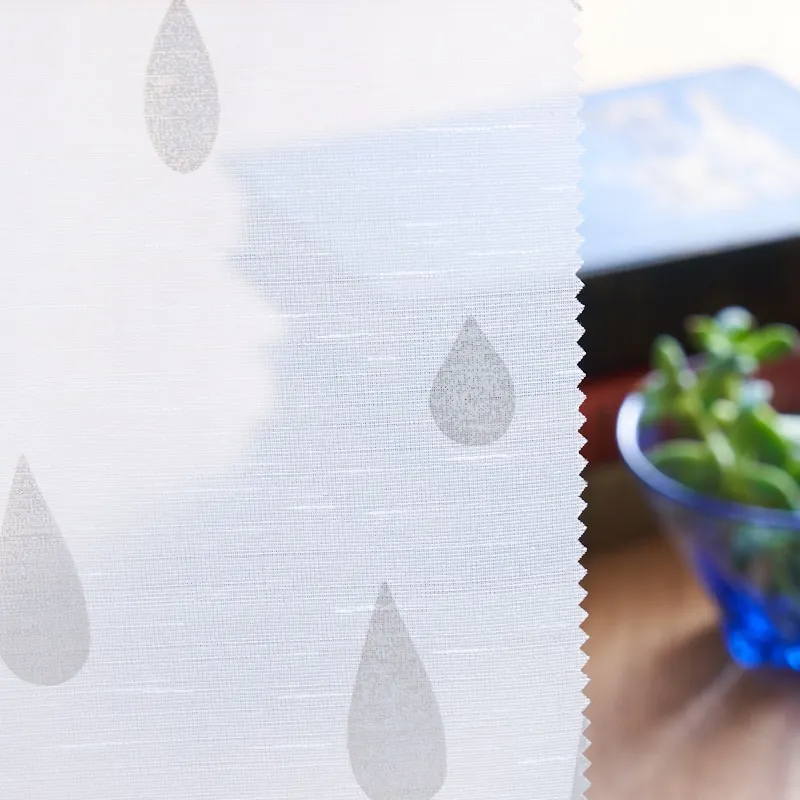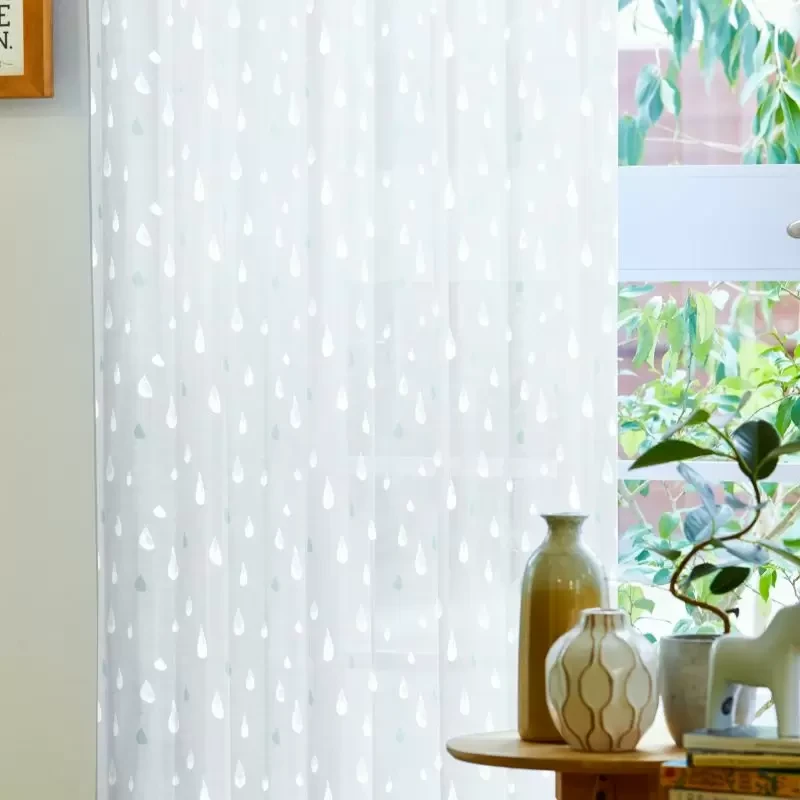 水滴をモチーフにした北欧調のレースカーテンです。ホワイトとカラーのカスレ感がナチュラルさと抜け感を感じさせます。
