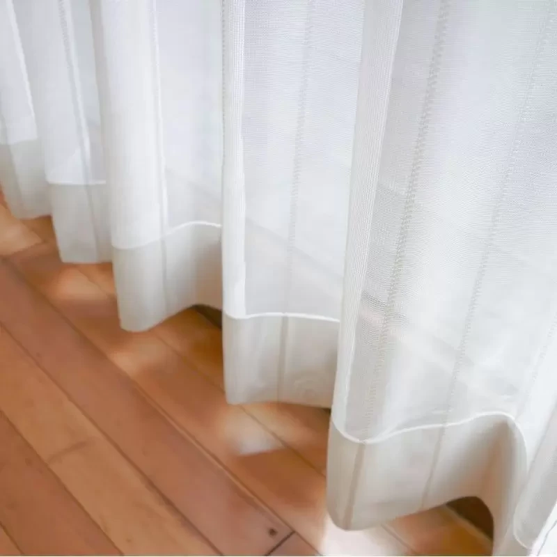 ミラー・UVカット機能付きのレースカーテンです。シンプルな縦ストライプの使いやすいレースです。