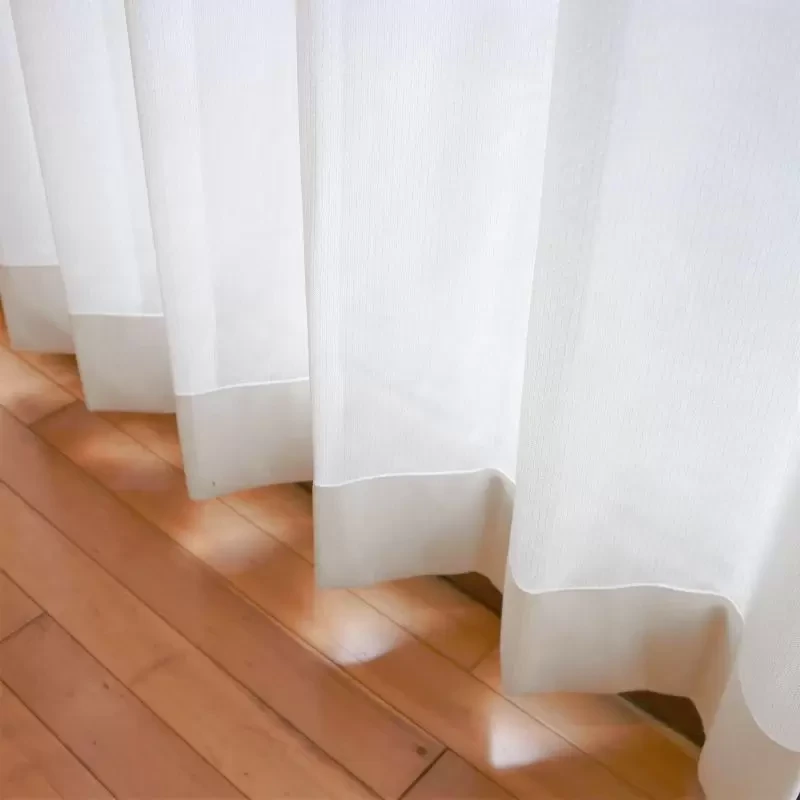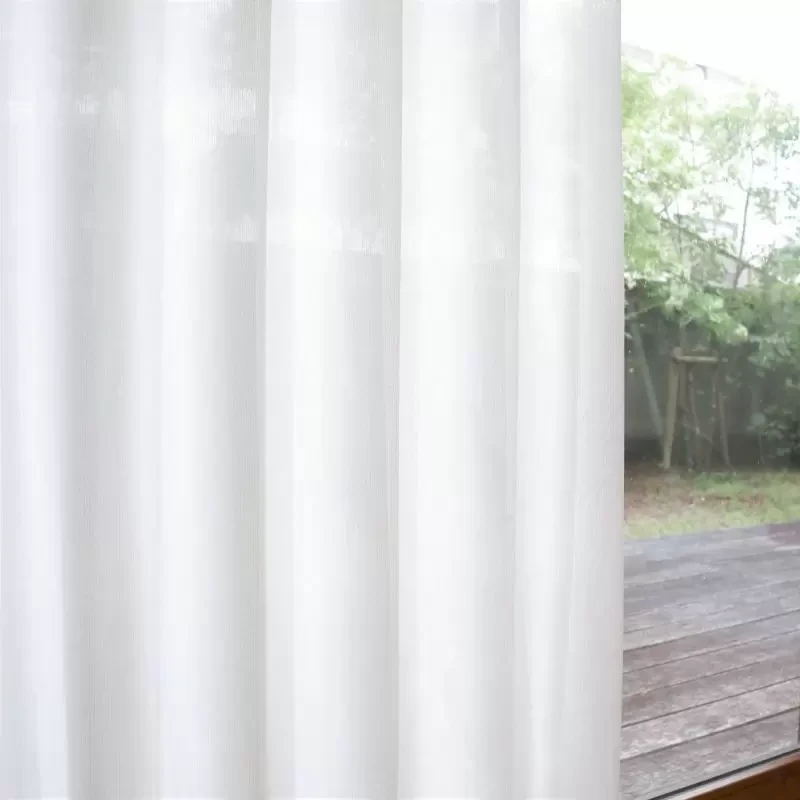 TEIJIN社の特殊繊維「エコリエ」を使用して遮熱、UVカット効果のある機能レースです。さらにミラー機能もあるのでプライバシー対策でお探しの方にもおすすめ。無地調ながらも縦方向に入ったラメ糸が雨模様のようで、キラキラと光って変化も楽しめます。シンプルなので幅広いドレープ生地との相性が良く、コーディネートしやすいおすすめのレースです。ナチュラル、モダン、アーバン、カジュアルなど幅広いテイストに馴染みます。家庭洗濯OK(ウォッシャブル)なので、お手入れも簡単。カラー:クリーンなホワイト色