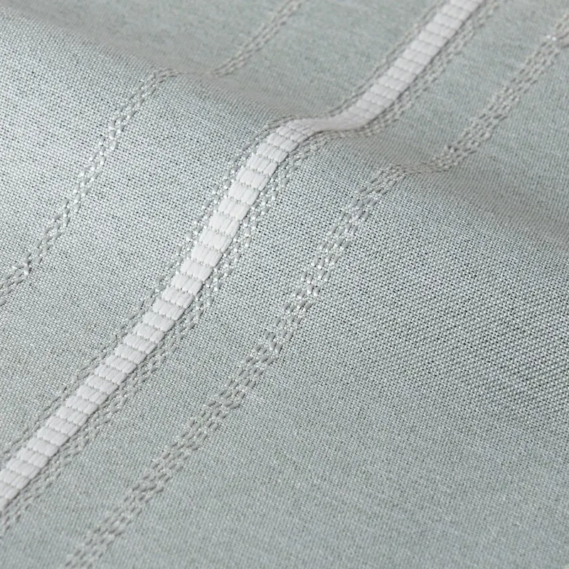 リボンテープで引かれたかの様なストライプと糸の光沢がキラキラ光るストライプが印象的な遮光3級のカーテンです。程よい高級感がリビングなどに使いやすいです。