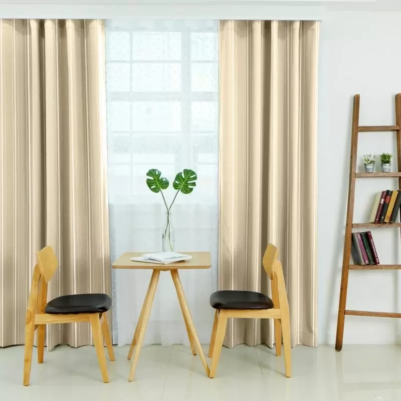リボンテープで引かれたかの様なストライプと糸の光沢がキラキラ光るストライプが印象的な遮光3級のカーテンです。程よい高級感がリビングなどに使いやすいです。