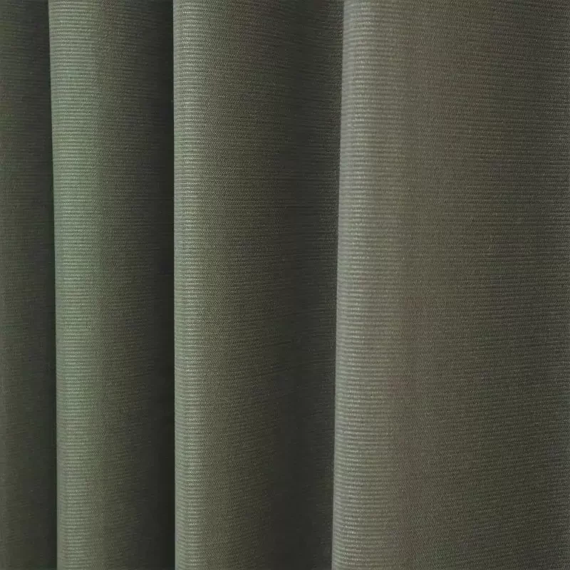 光沢感がありヨコの方向に細かくボーダーが入っております。生地感と色合いがモダンでありどんなお部屋にも使いやすいオススメの遮光カーテンです。