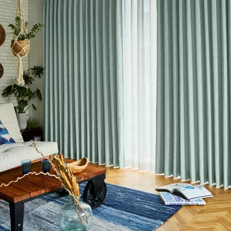 形状安定加工を施すことにより、カーテンの裾が広がらず、 すっきりとまとまり、美しいウェーブを演出します(洗濯5回程度まで効果が持続)。
