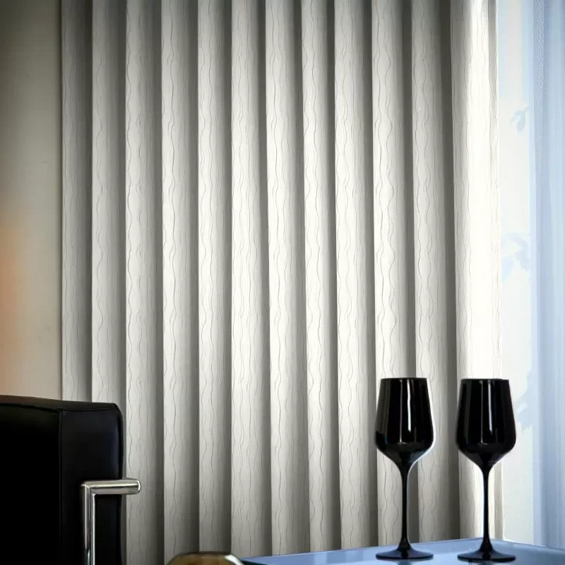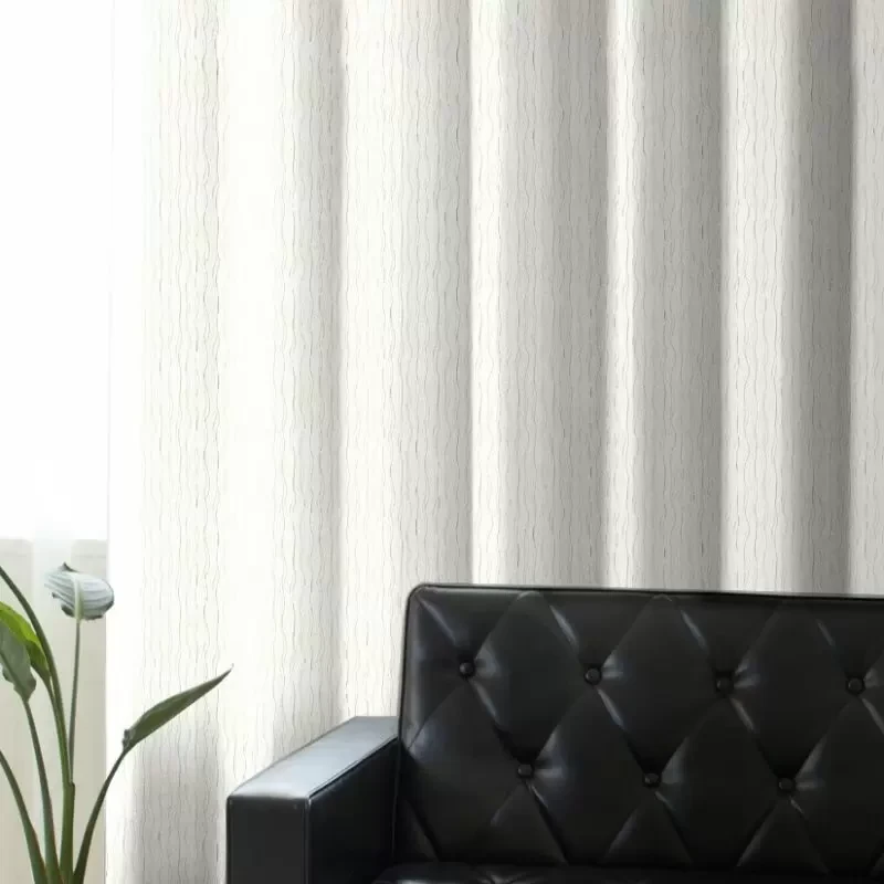 細かな不揃いな縦の波柄が入ったドレープ生地。カーテンにすると柄は主張し過ぎず、落ち着いた雰囲気に。
