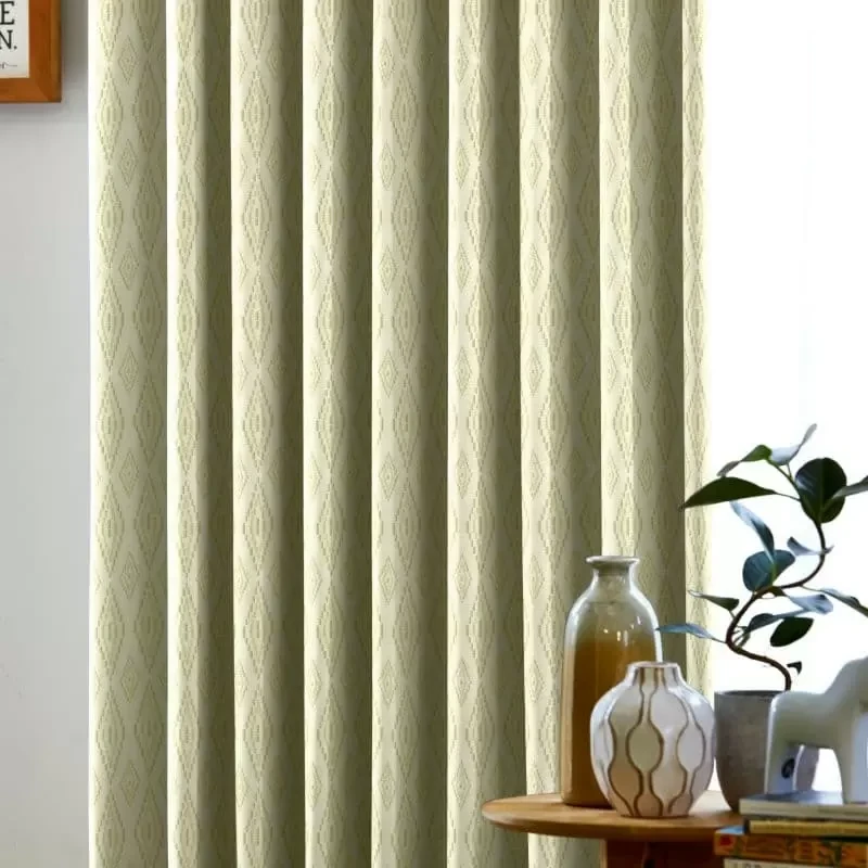 ほんのりトライバル(民族)テイストをまとった、ナチュラルな印象のダイヤ幾何織柄ドレープ。インテリアを程よくカジュアルダウンし、小慣れ感を演出してくれるアイテムです。