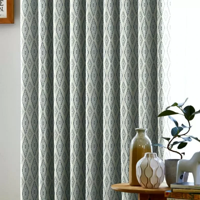 ほんのりトライバル(民族)テイストをまとった、ナチュラルな印象のダイヤ幾何織柄ドレープ。インテリアを程よくカジュアルダウンし、小慣れ感を演出してくれるアイテムです。
